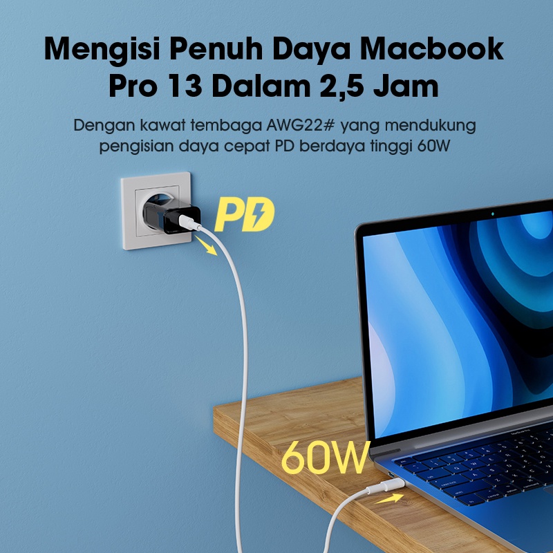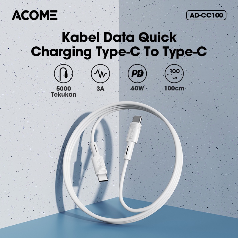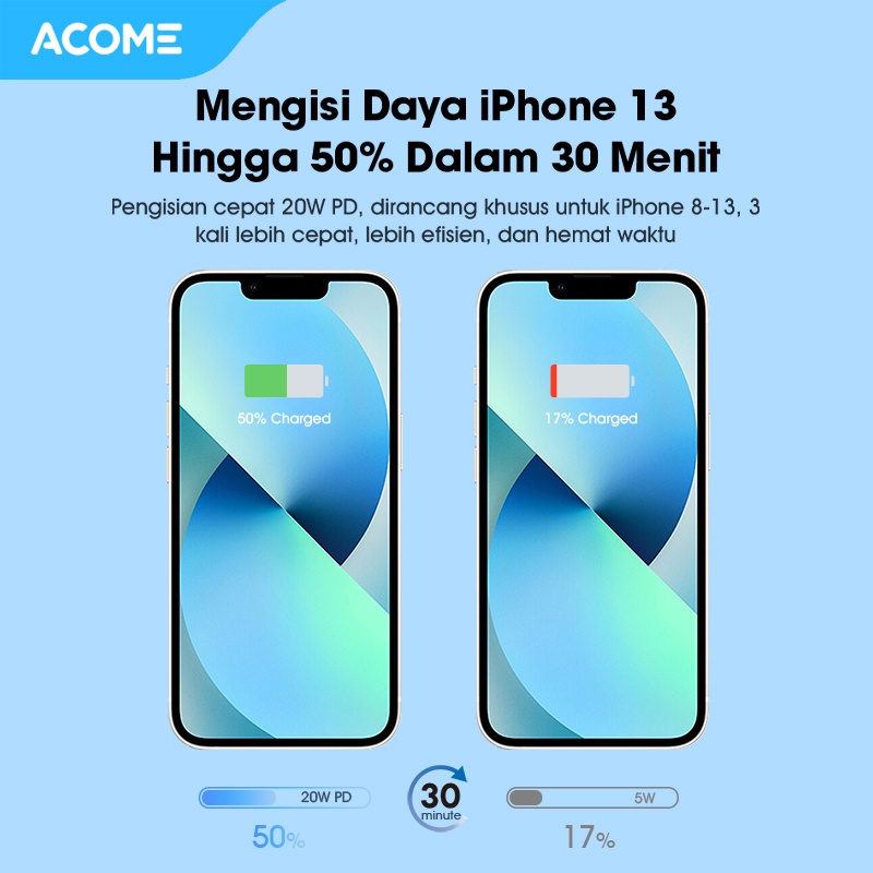 ACOME Bundling Hemat Charger 20W PD USB-C AC07 + Kabel Data Type-C / Lightning Fast Charging AD-C Series Original -