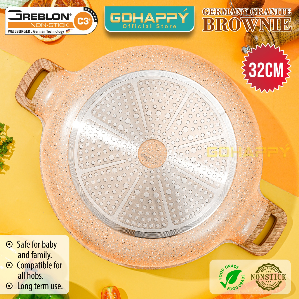 Panci Wok Pan 32Cm Tutup Kaca Gohappy Germany Granite Cool Brownie Wajan Wokpan Anti Lengket Bahan Greblon C3 Jerman Ant