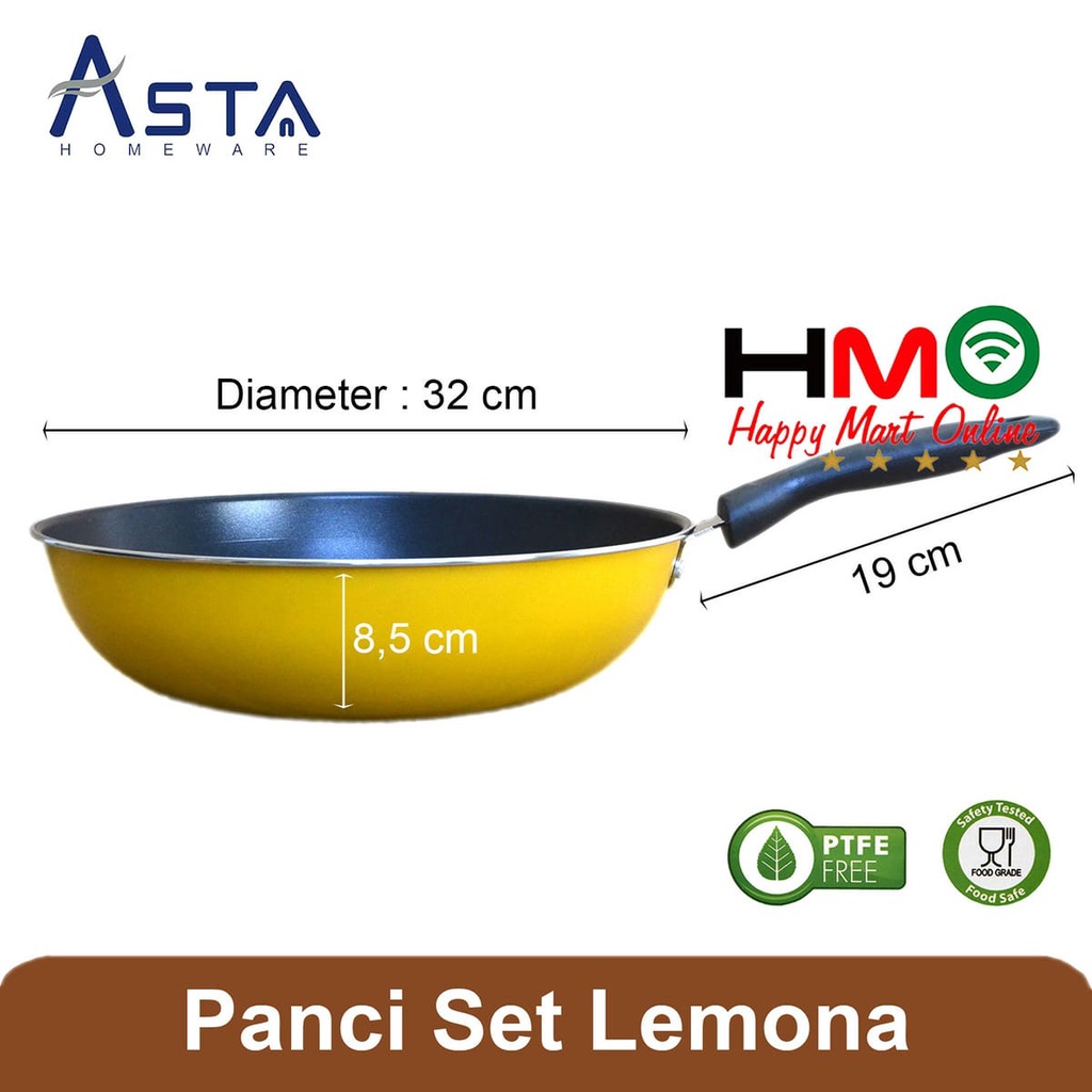 Asta Lemona Wajan Panci Teflon Set Anti Lengket Teflon Cookware Set 7 Pcs Asta Lemona Asps-09 Asps09