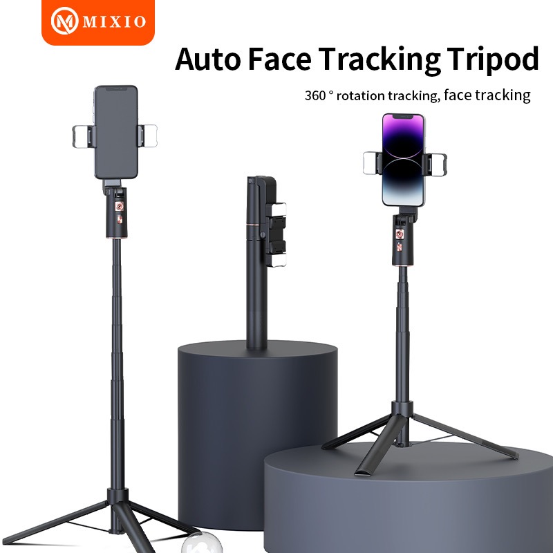 MIXIO A100 Auto Face Tracking Trid 1.5M Gimbal Handphone Stabilizer 360° With Dual Lampu Led
