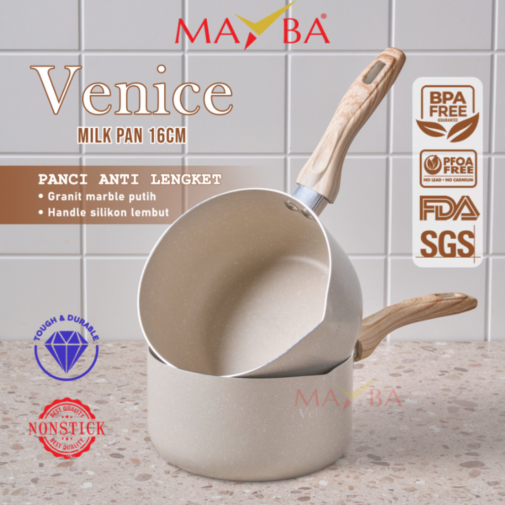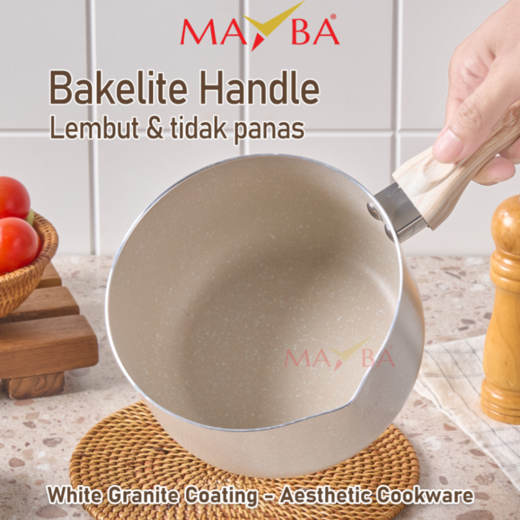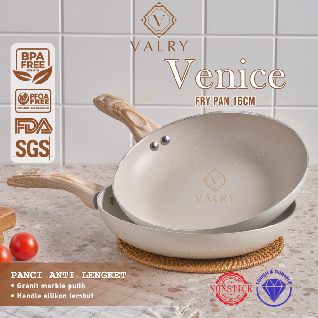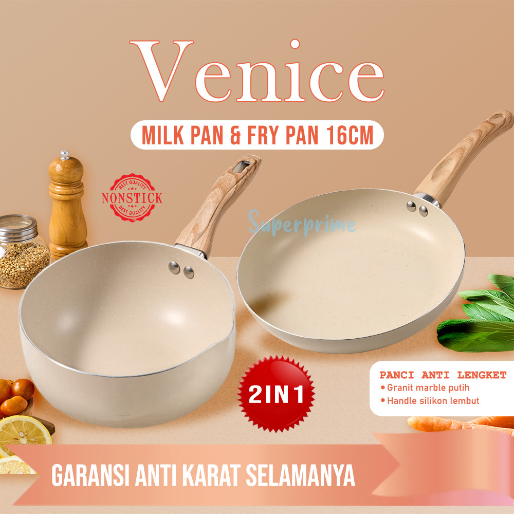 Superprime Panci Set 2In1 Venice Wajan Mpasi Saucepan Frypan 16 Cm Anti Lengket Teflon Granite Putih