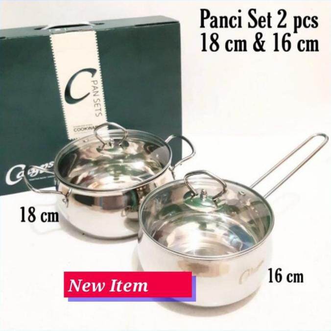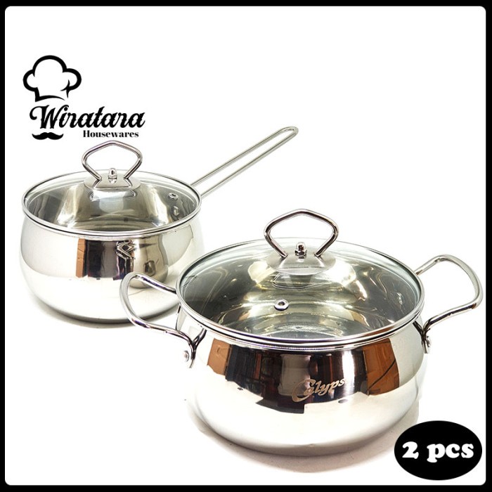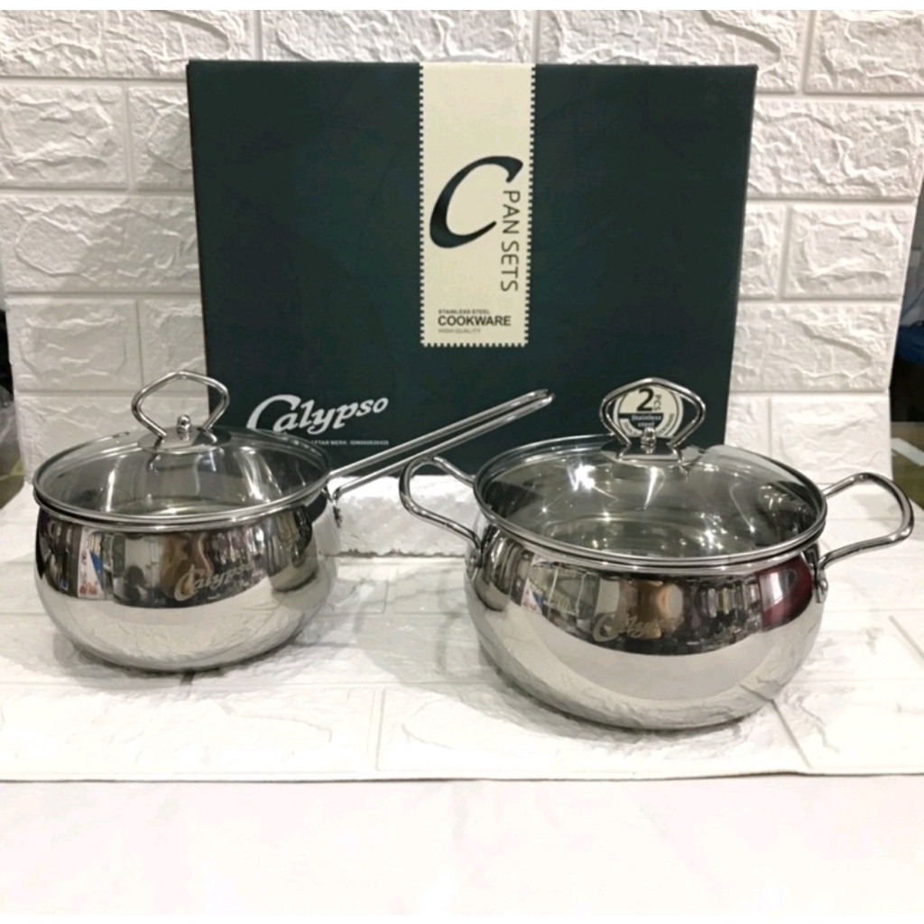 Calypso Panci Set 2 Pcs 16Cm 18Cm Panci Tutup Kaca Stainless Steel - Modern Kitchen