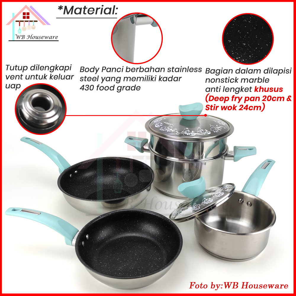 Panci Set / Wajan Set Induksi / Listrik / 7Pcs Cookware Set Stainless Pastel Supra