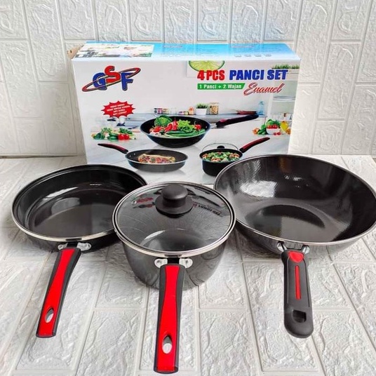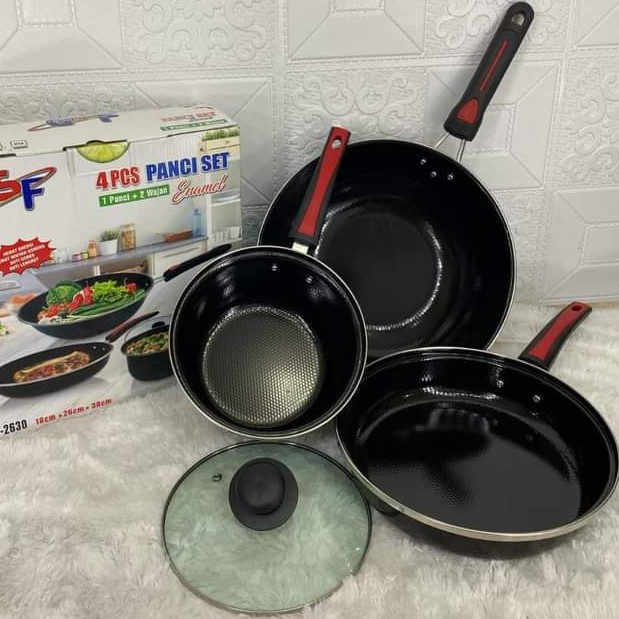 Panci Wajan Penggorengan Set Enamel Anti Lengket 4Pcs Gsf G 2630 / G2630 / G-2630