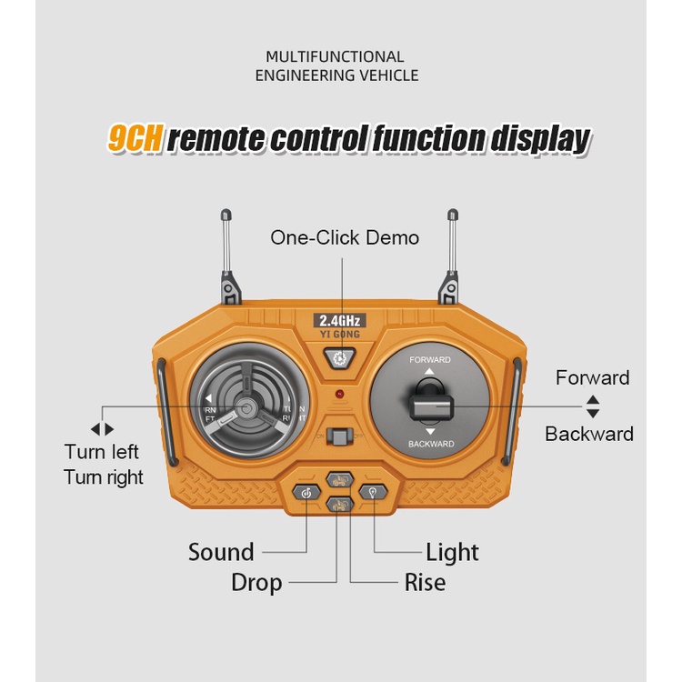 Rc Dump Truck 9 Channel Dumper Konstruksi Kendaraan Mainan Bahan Paduan 2.4Ghz Remote Control