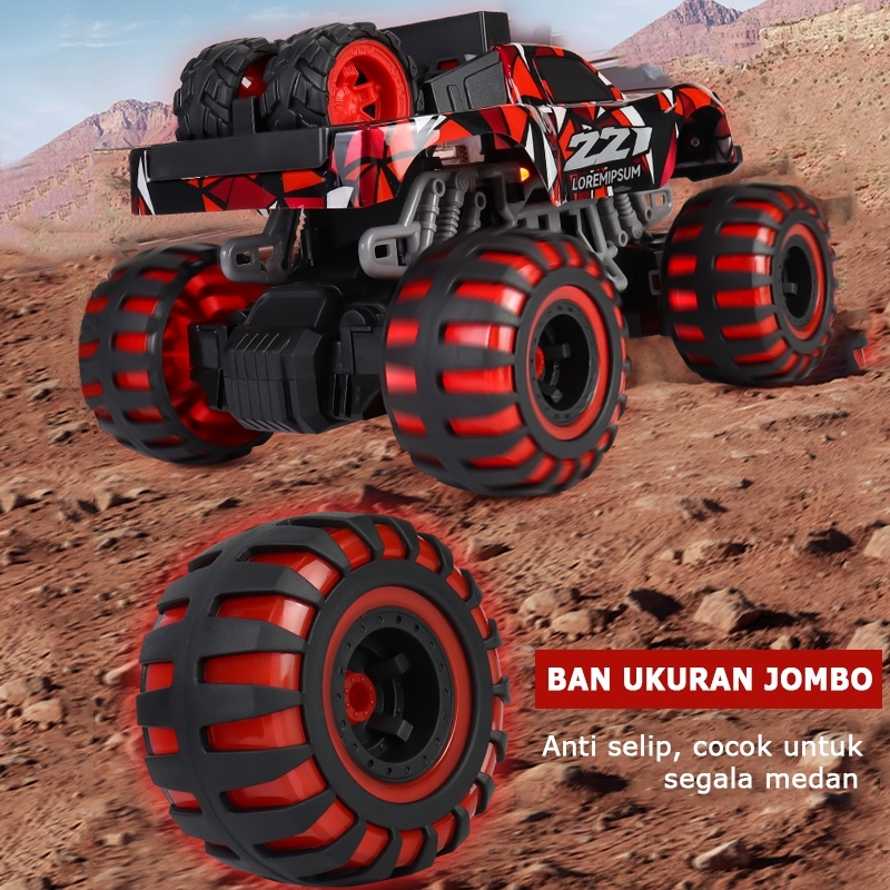 Mobil Rc Monster Remote Control Besar 2.4Ghz Mainan Anak Keren Dengan Lampu Led Dan Ban Anti Slip