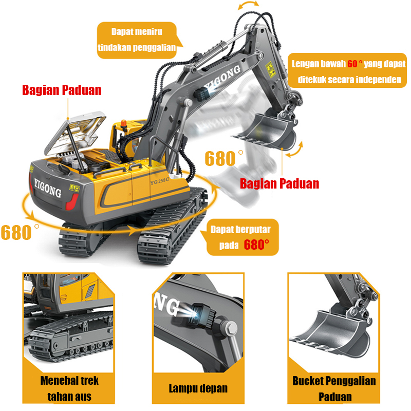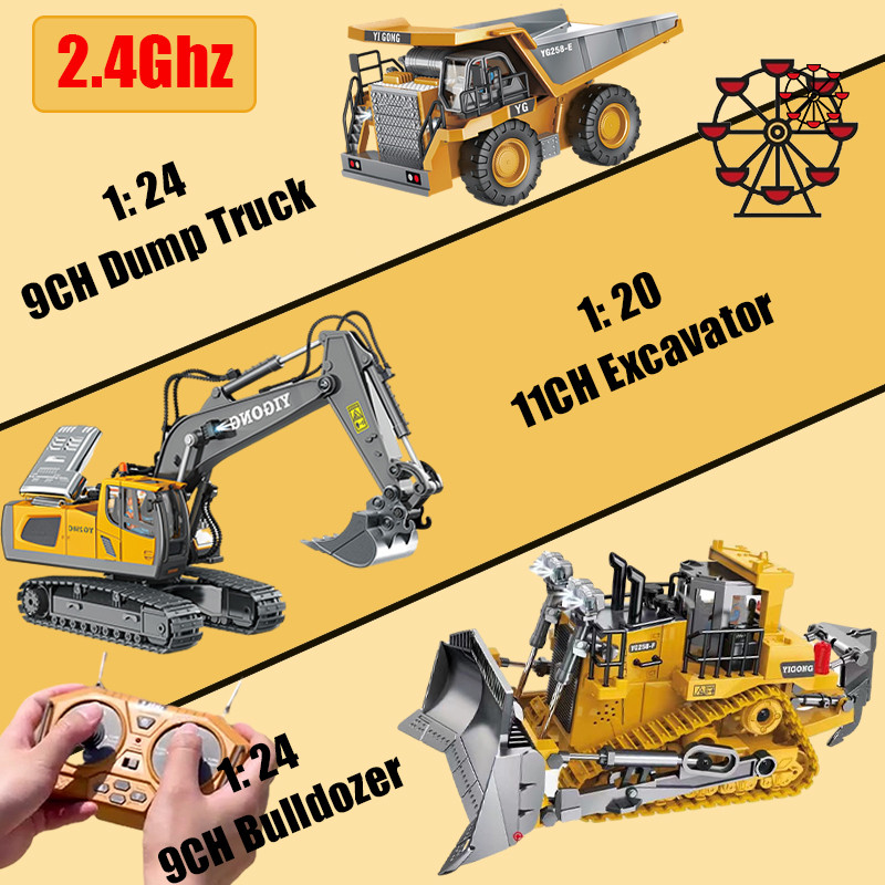 Ferris Wheel 2.4G Rc Excavator Damper Mobil Kendaraan Teknik Crawler 11 Channel Rc Beko Baterai Cas Tracktor Penggali Tr