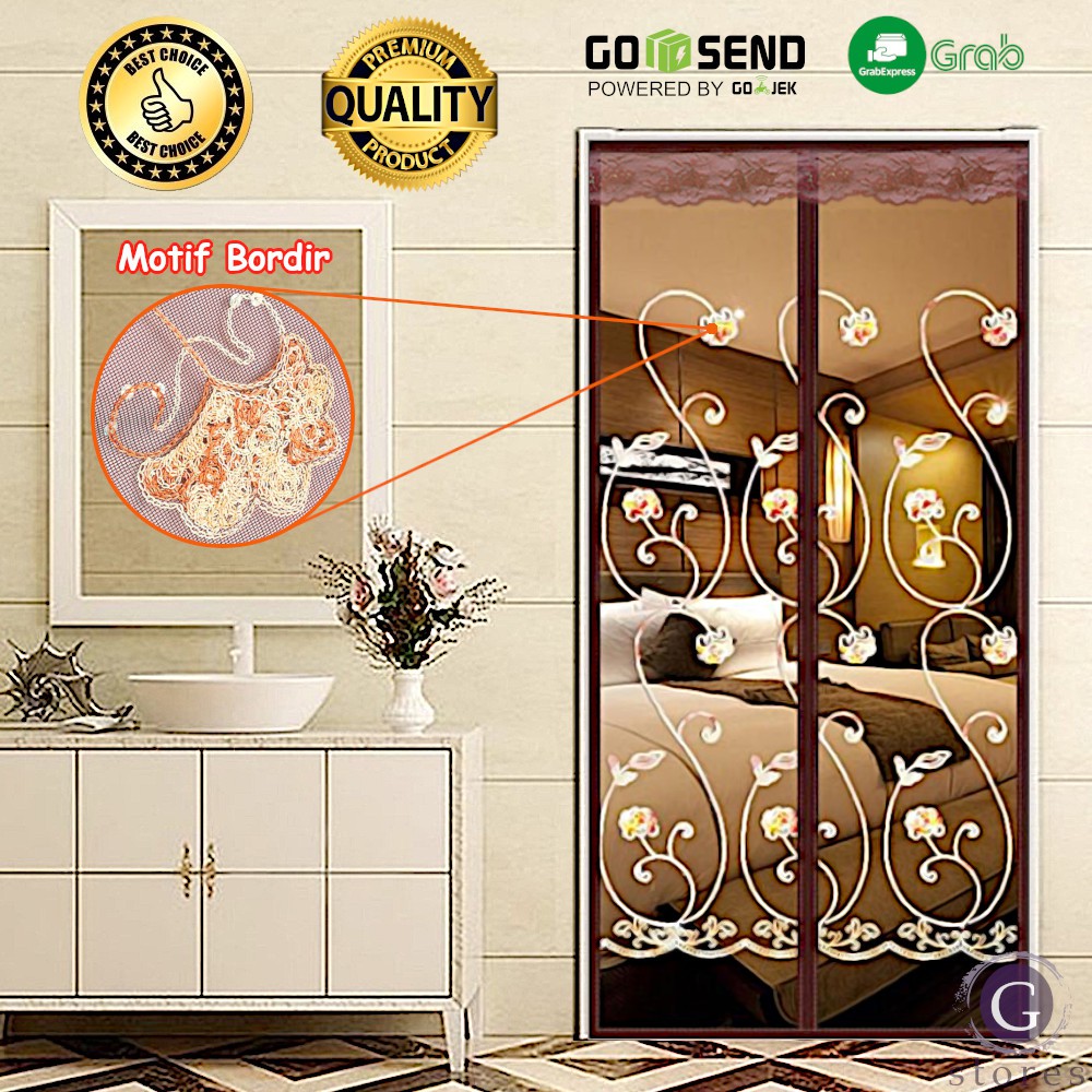 Tirai Magnet Premium Mesh Anti Nyamuk Gorden Magnet Anti Nyamuk Serangga Motif Bordir Embroidery