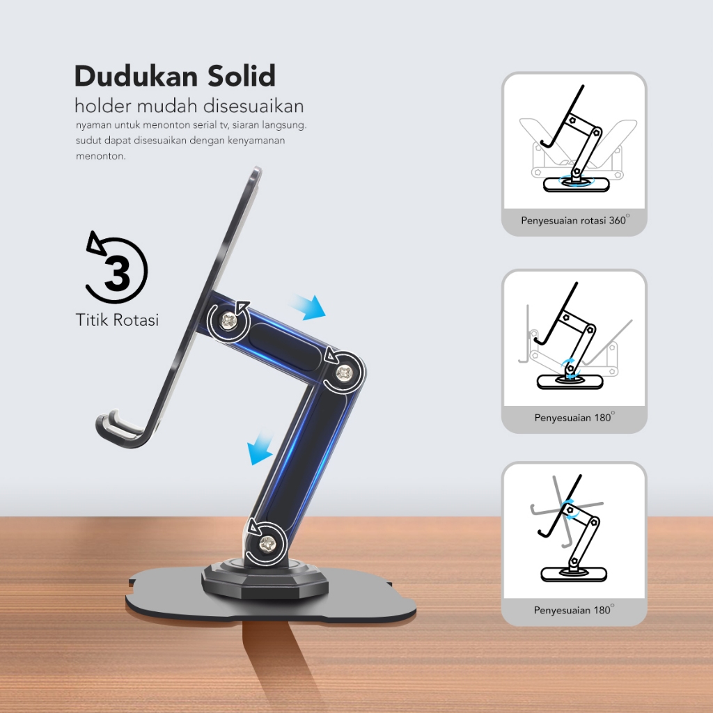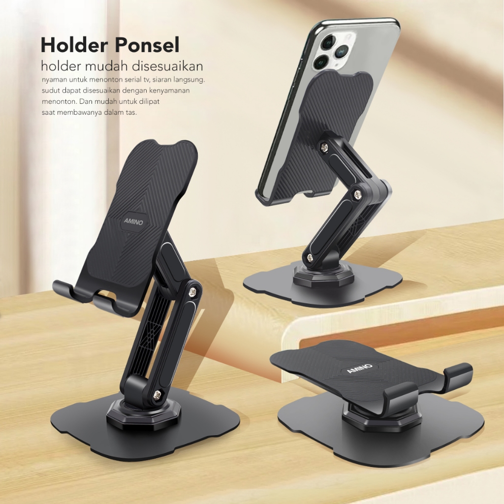 AMINO Phone Holder Stand Foldable Dudukan Universal Tablet 360 Rotation Desktop Stand Di Lipat