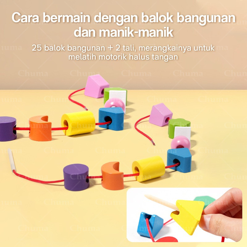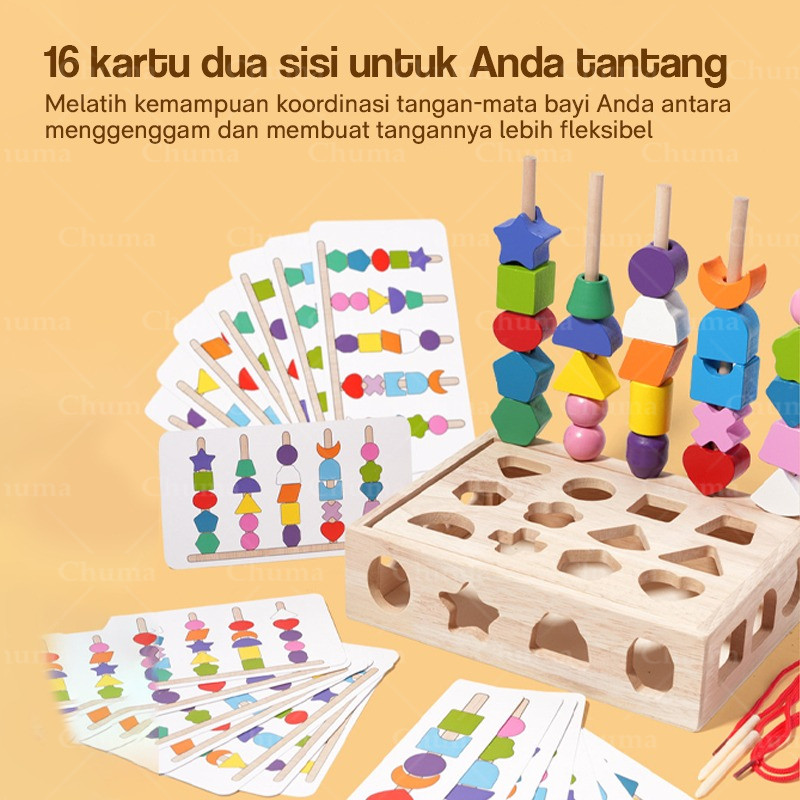 Puzzle Shape Matching Set Wooden Puzzle Toy Mainan Puzzle Kognitif Pencocokan Geometris Manik-Manik Tali Pelangi Lima Ko