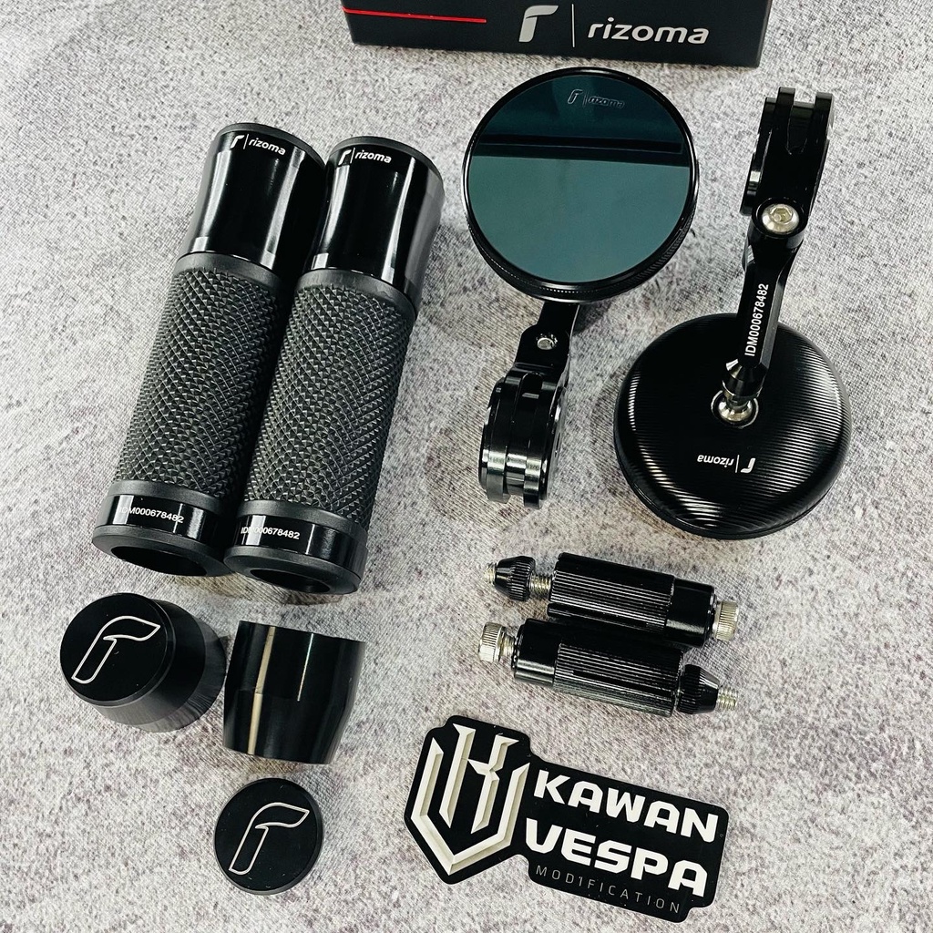 Spion Rizoma Model Puig Cnc + Handgrip Rizoma Black Universal - Vespa Sprint Primavera S125 Lx Gts