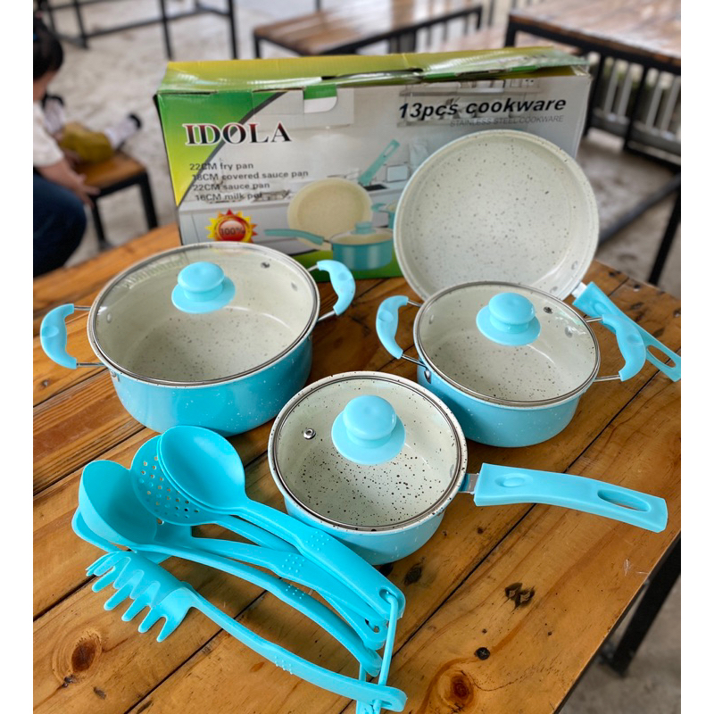 Panci Set Spatula 13Pcs Cookware Set 13Pcs Tutup Kaca Termurah