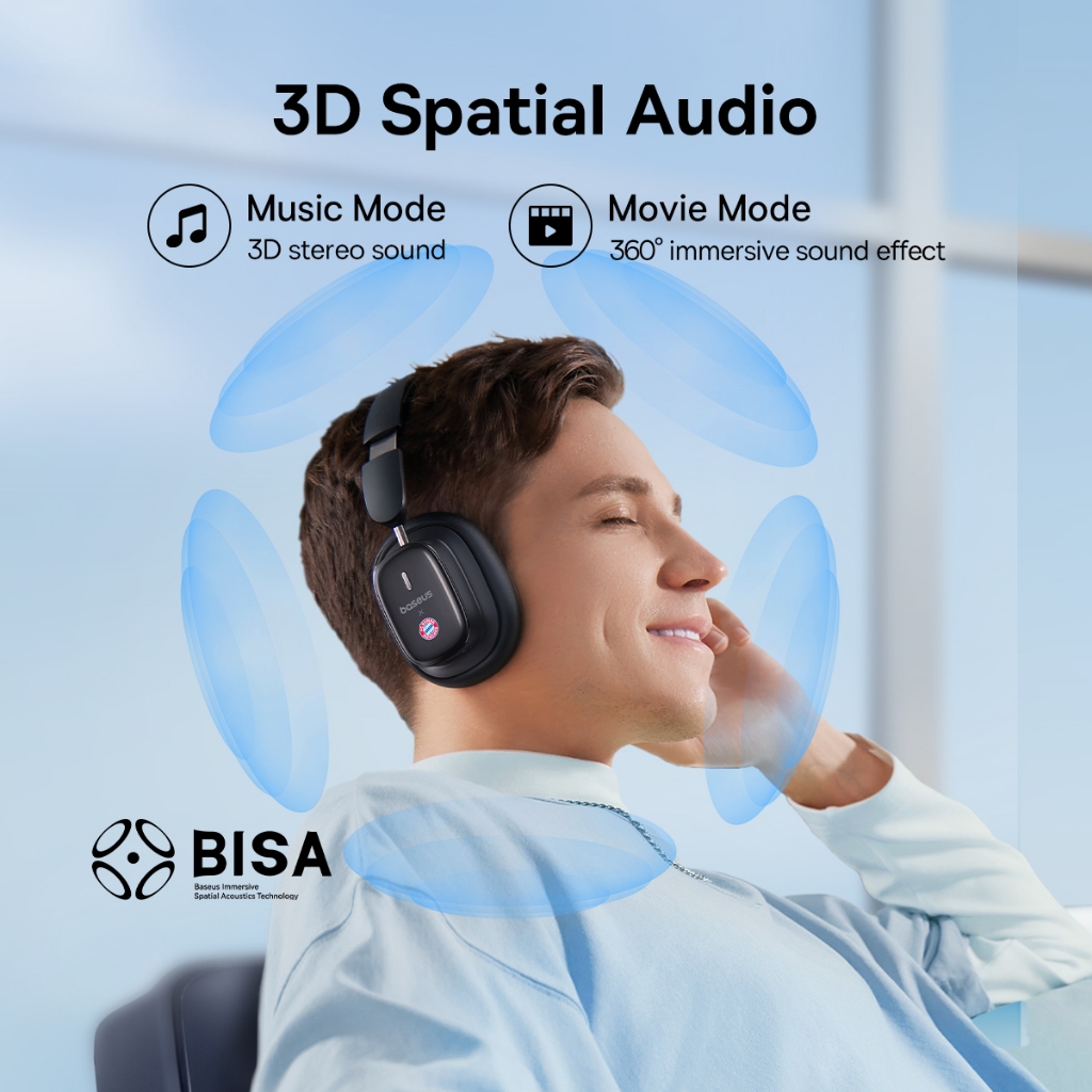 Baseus Headphone H1i ANC Hi-Res Noise-Cancellation Wireless Super Bass Bantalan Lembut
