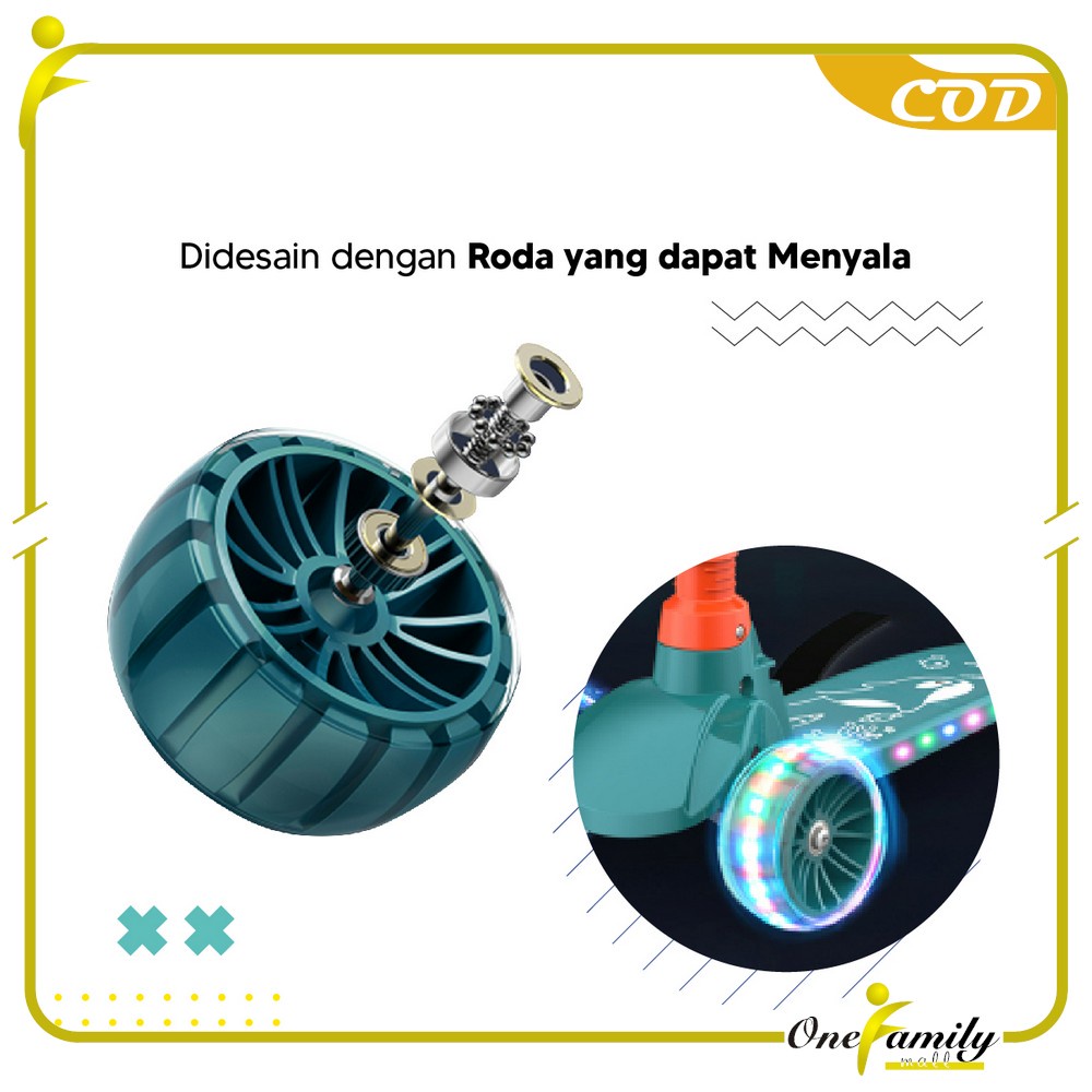 One-M290 Mainan Anak Skuter Otoped Sepeda Duduk 3 Roda 2In1 Ada Musik Lagu Lampu Scooter Anak Roda Nyala
