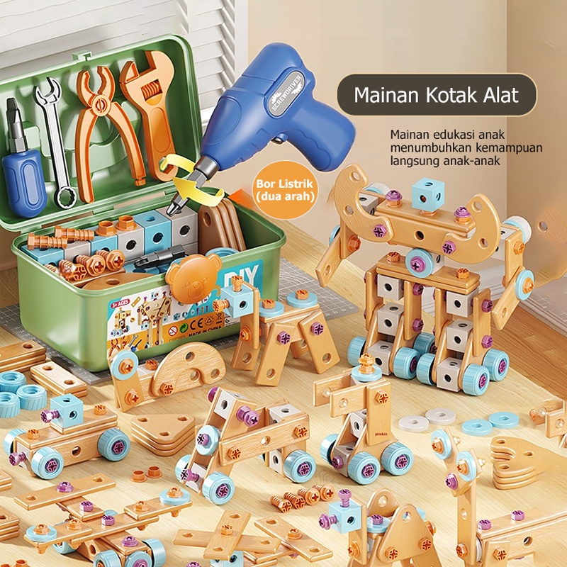 Wangao Mainan Edukasi Bor Listrik Tool Box Alat Perbaikan Simulasi Pembongkaran Dan Mainan Diy
