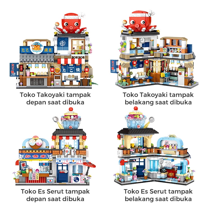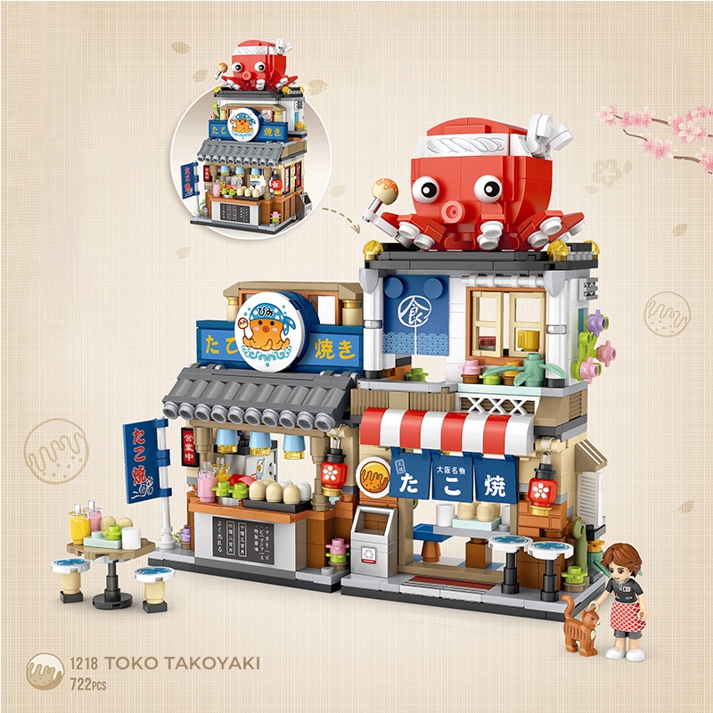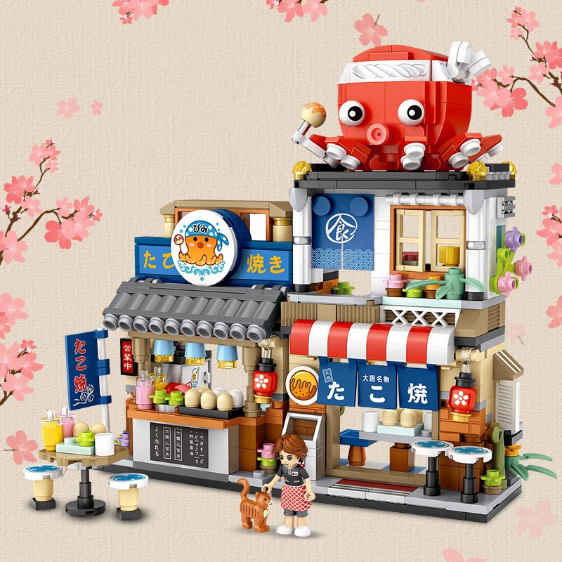 Ohsome Block Mainan Rakit Brick Blok Susun 3D Diy Miniatur Toko Makanan Jepang Kedai Takoyaki / Japanese Folding Food St