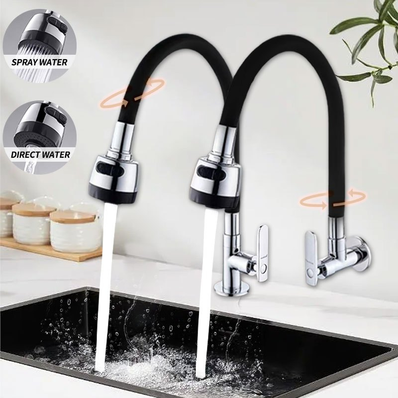 SUS 304 Kran Angsa Cuci Piring Dapur Fleksibel Multi Fungsi Tembok/ Kran Angsa Cuci Tangan 2 Mode