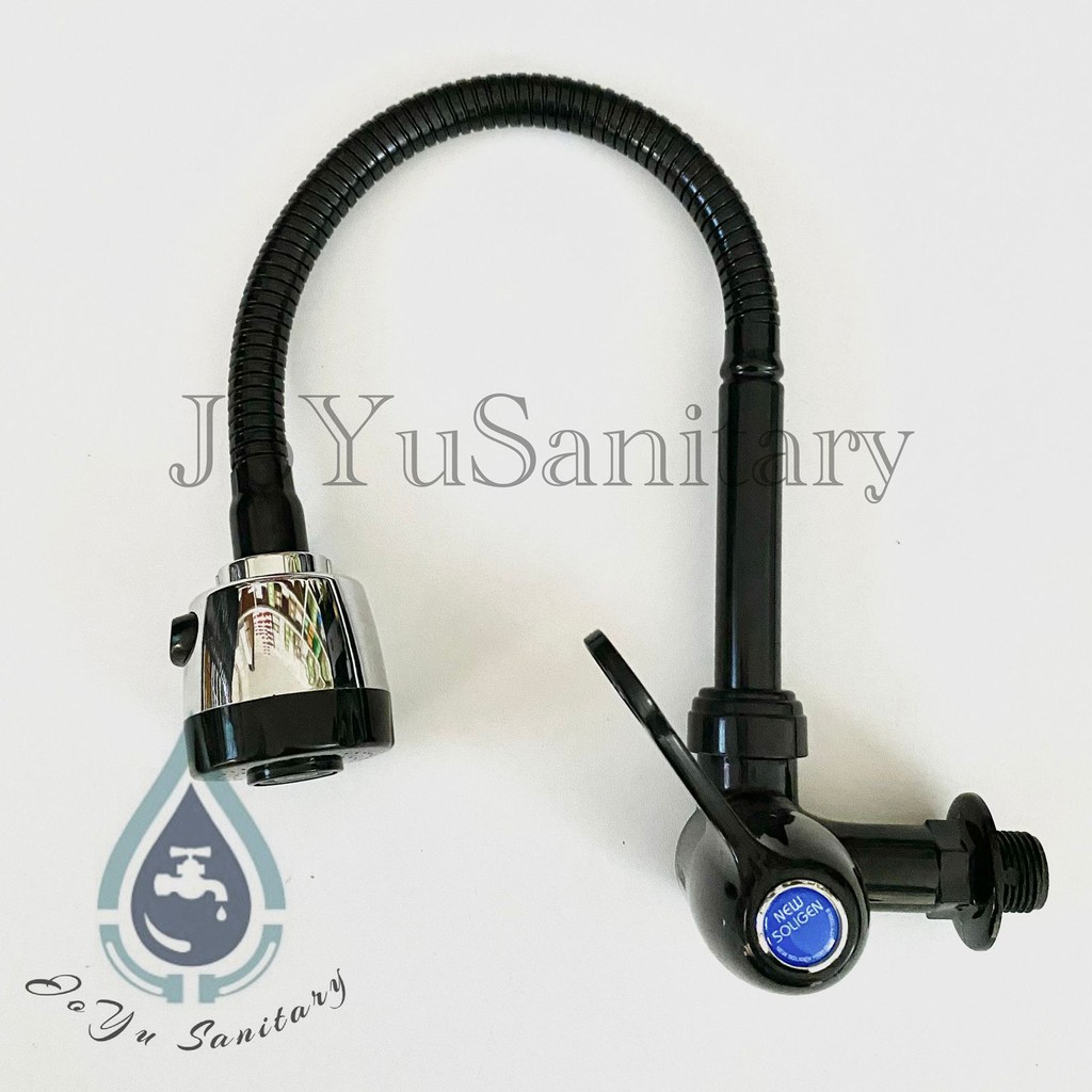 Kran air Angsa Fleksibel PVC tembok HITAM WS1B- Keran sink plastik 2in1 Cuci Piring Dapur dinding black soligen /S1