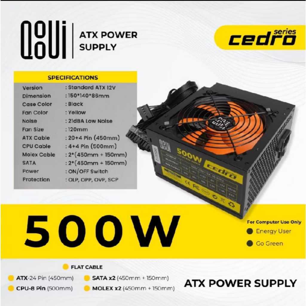 WER SUPPLY QOOUi 500WATTKOMPUTER PC DESKT0P/WER SUPPLY ATX-500W SERIES CEDRO