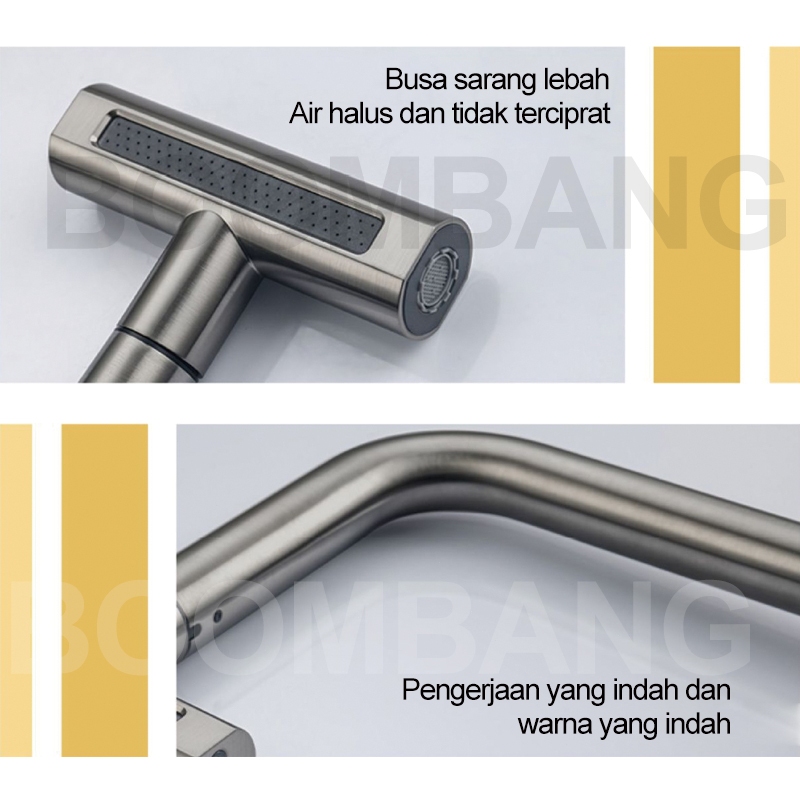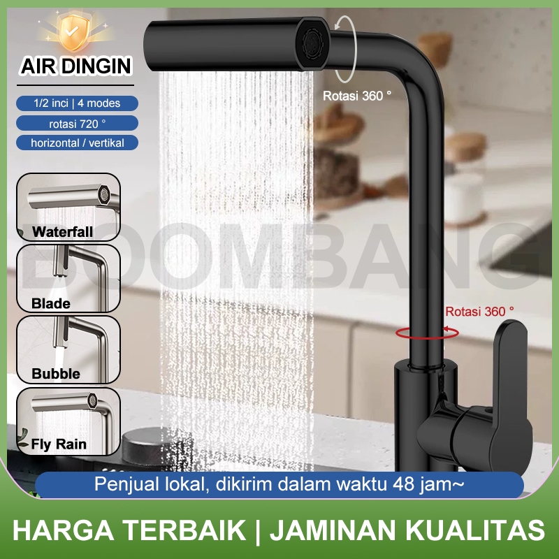 Kran Air Terjun 4 Mode/Kran Angsa Fleksibel/Kran Wastafel Cuci Piring/Kran Air 1/2 inci/Kran Shower