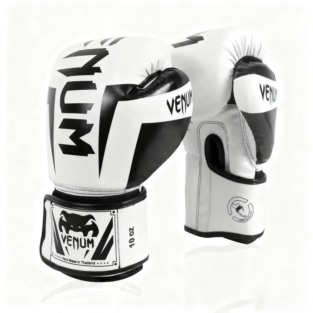 Sarung Tinju Boxing/Sarung Tangan Tinju Muay Thai Kick Boxing MMA Hitam/Putih Sarung Tinju Venum Elite Muaythai /