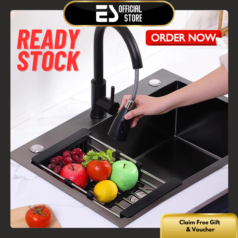 ES Kitchen Sink Wastafel Stainless Steel Bak Cuci Wastafel Dapur Lengkap Tarik Adjustable Terbaru