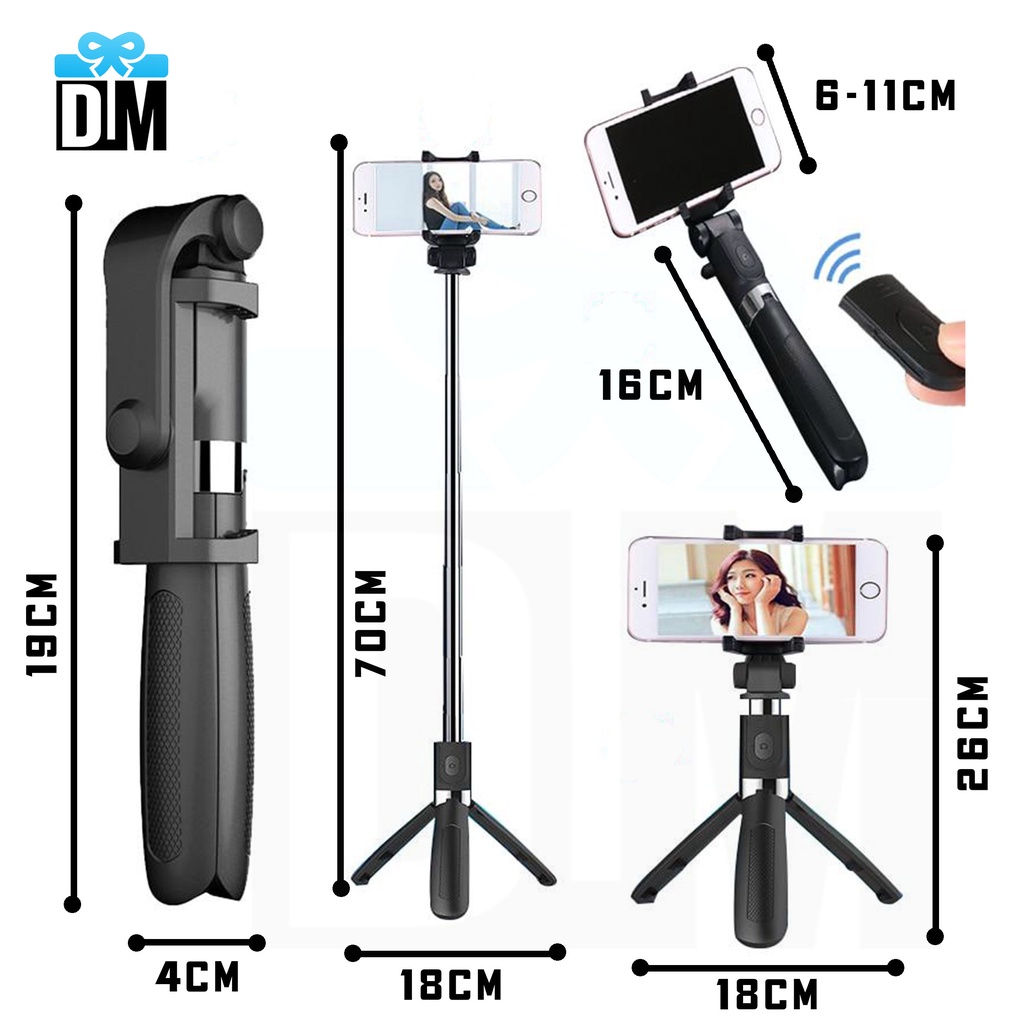 Tongsis Selfie Stick Trid Bluetooth R1 / Q07 3 in 1 Phone Holder Penyangga Ganjelan HP
