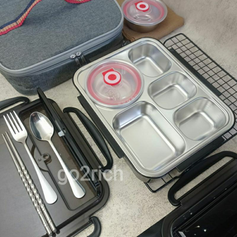 Tempat Makan Set Lunch Box Stainless Steel 304 Tas Sendok Makan Set