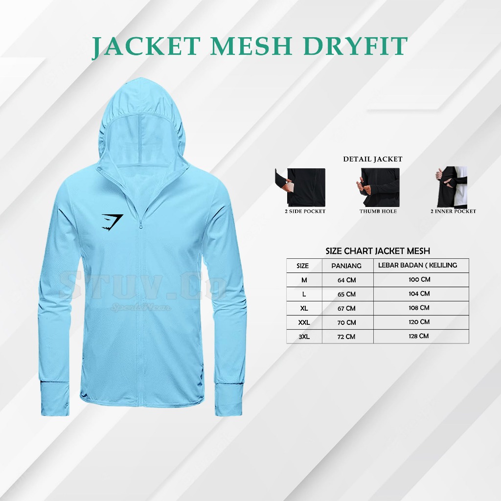 Jaket UV Protection Dry Fit Olahraga Lari Yoga Fitness Running Pria Wanita Size M-L-XL-XXL-XXXL