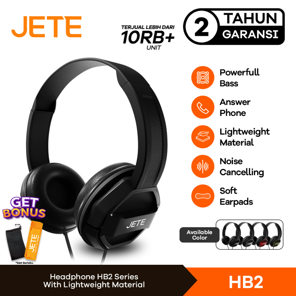 Headset Headphone Kabel JETE HB2 Noise Cancelling with Microphone - Garansi 2 Tahun
