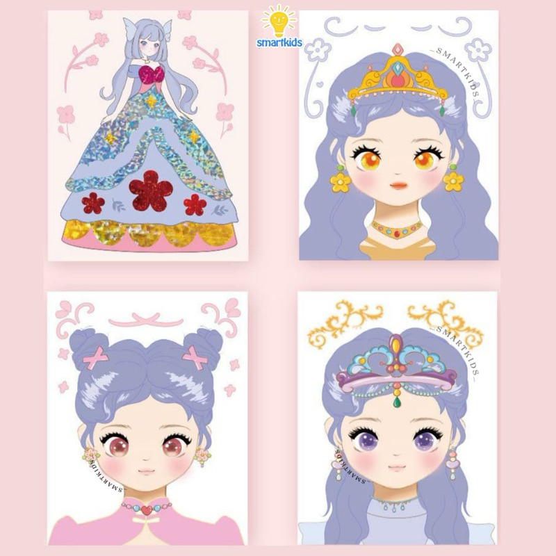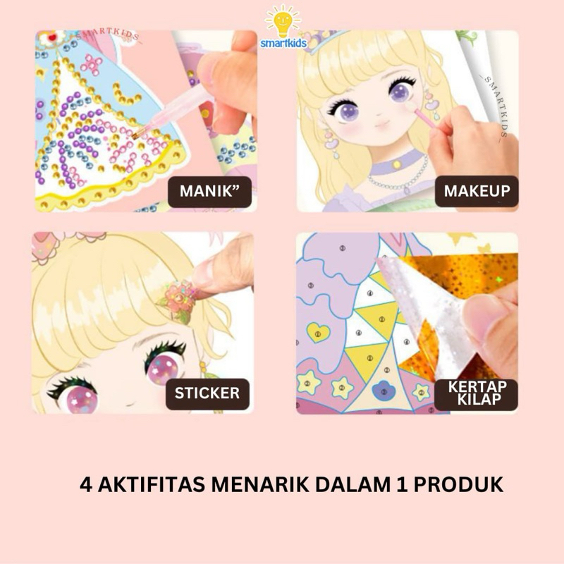 Mainan Diy Make Up Painting Princess Anak Perempuan/ Menggambar Merias Dandan Wajah Menempel Stiker Manik / Kreatifitas