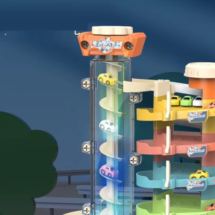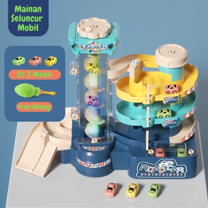 Babytoys Mainan Edukasi Anak Laki Laki Bayi Seluncuran Track Mobil Mobilan Musikal Parkir 3 Tingkat
