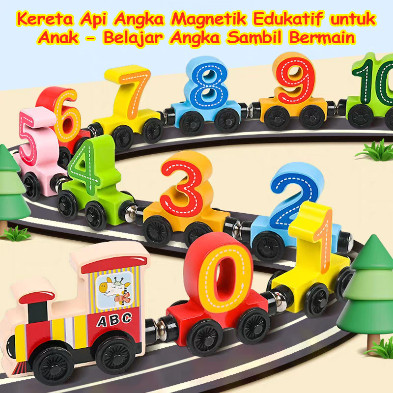 Kereta Api Magnet Kayu Edukatif Angka Mainan Puzzle Anak Bermain Dan Belajar