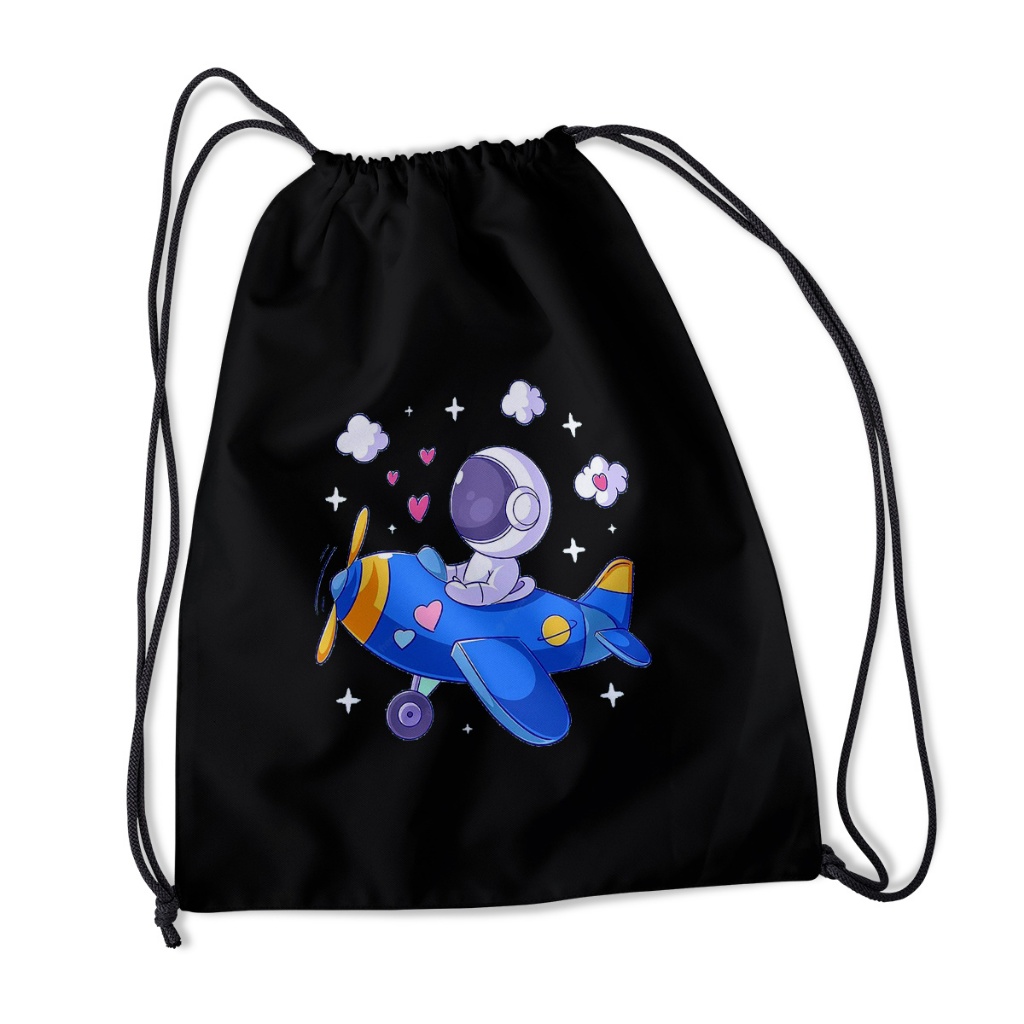 Tas Serut Hitam - Stringbag Pria Wanita Kece Motif DTF Anti Air | Devva.id