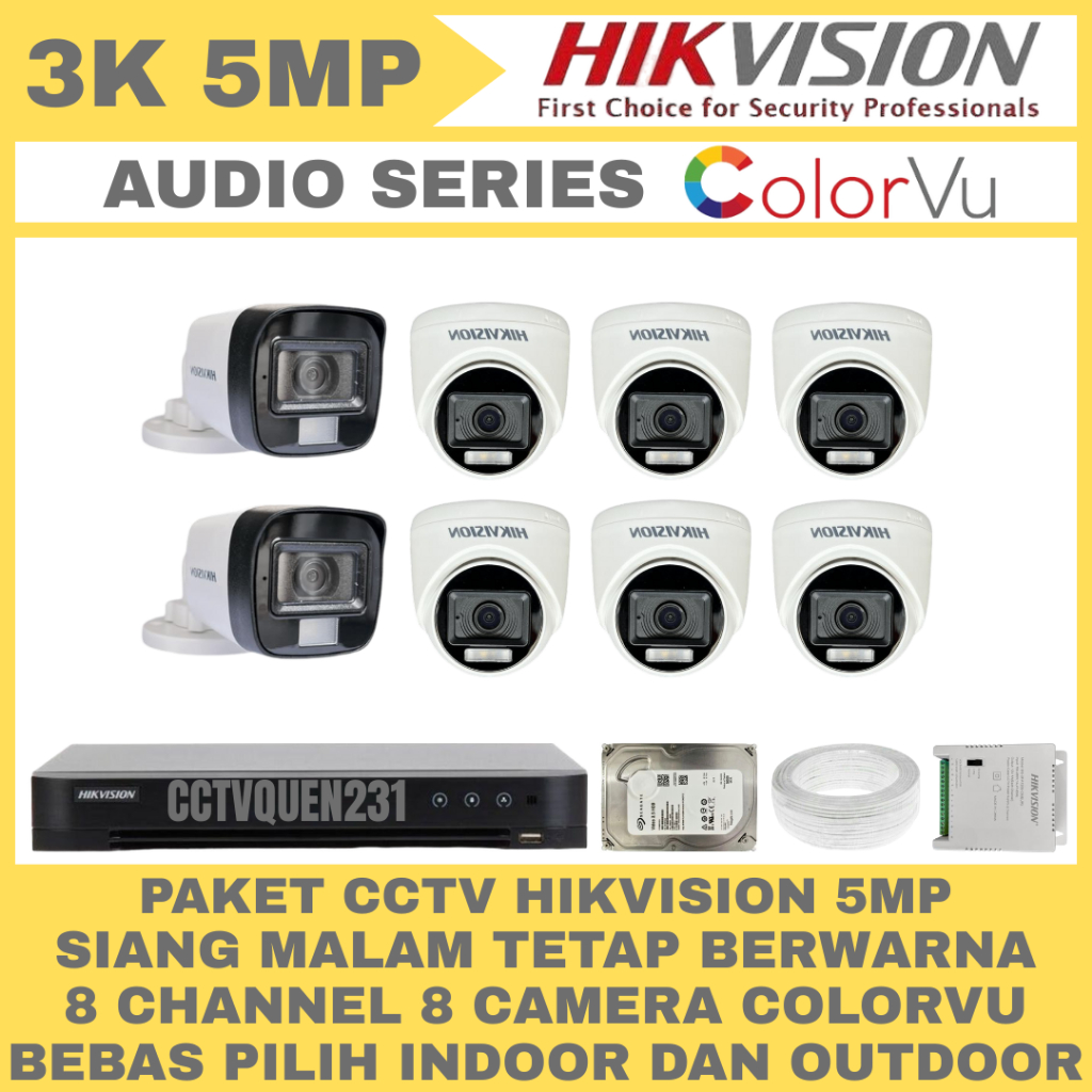 PAKET CCTV HIKVISION COLORVU 5MP 8 CHANNEL 8 CAMERA TURBO HD 3K AUDIO SERIES KAMERA CCTV
