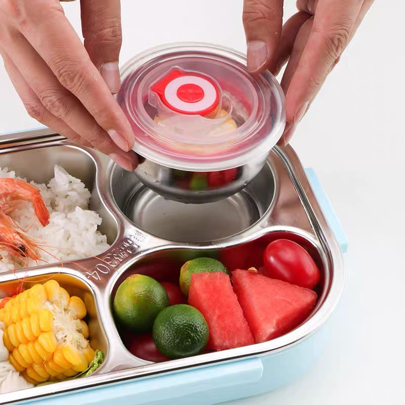 Kotak Makan 4 SEKAT / Lunch Box Stainless Tahan Panas Dan Anti Tumpah