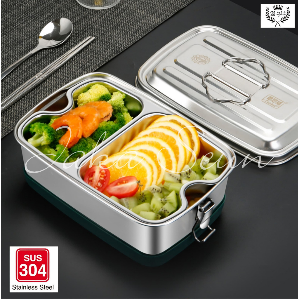 JNZ Kotak makan 2 tingkat FULL stainless steel 304SUS Lunch Box Ukuran besar dengan TAS BEKAL