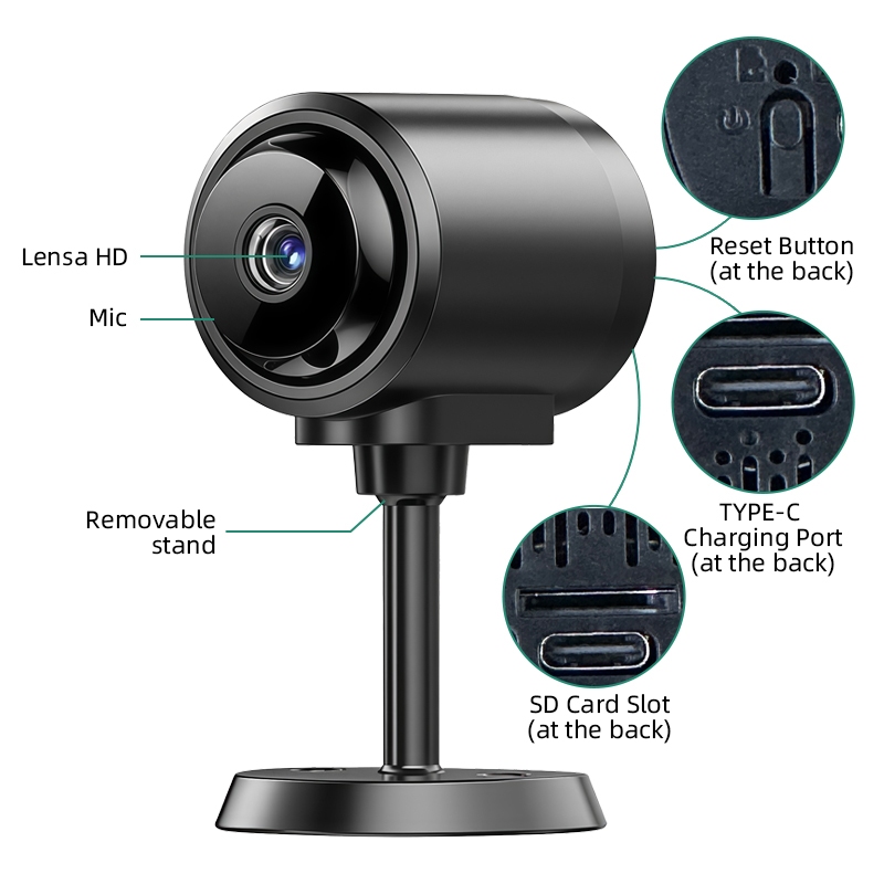 Kamera CCTV M5 Kamera Tersembunyi HD Kecil Kamera Televisi Sirkuit Tertutup Mini IP Suara Dua Arah Baterai Internal