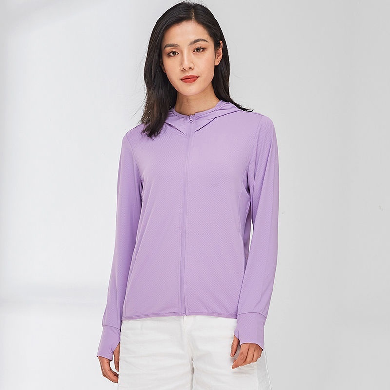 Jaket Wanita Lengan Panjang Bahan Cepat Kering dengan Hoodie Resleting Untuk Yoga Gym Lari