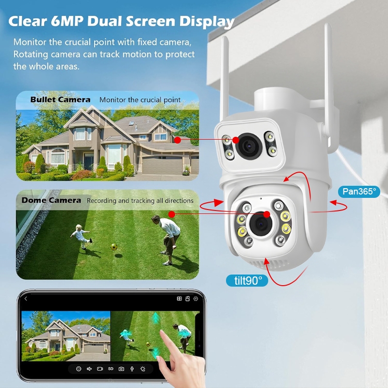 Upcam 6MP CCTV WiFi Outdoor Dual Lens 360° IP Camera Kamera CCTV WaterPr0of HP Jarak Jauh