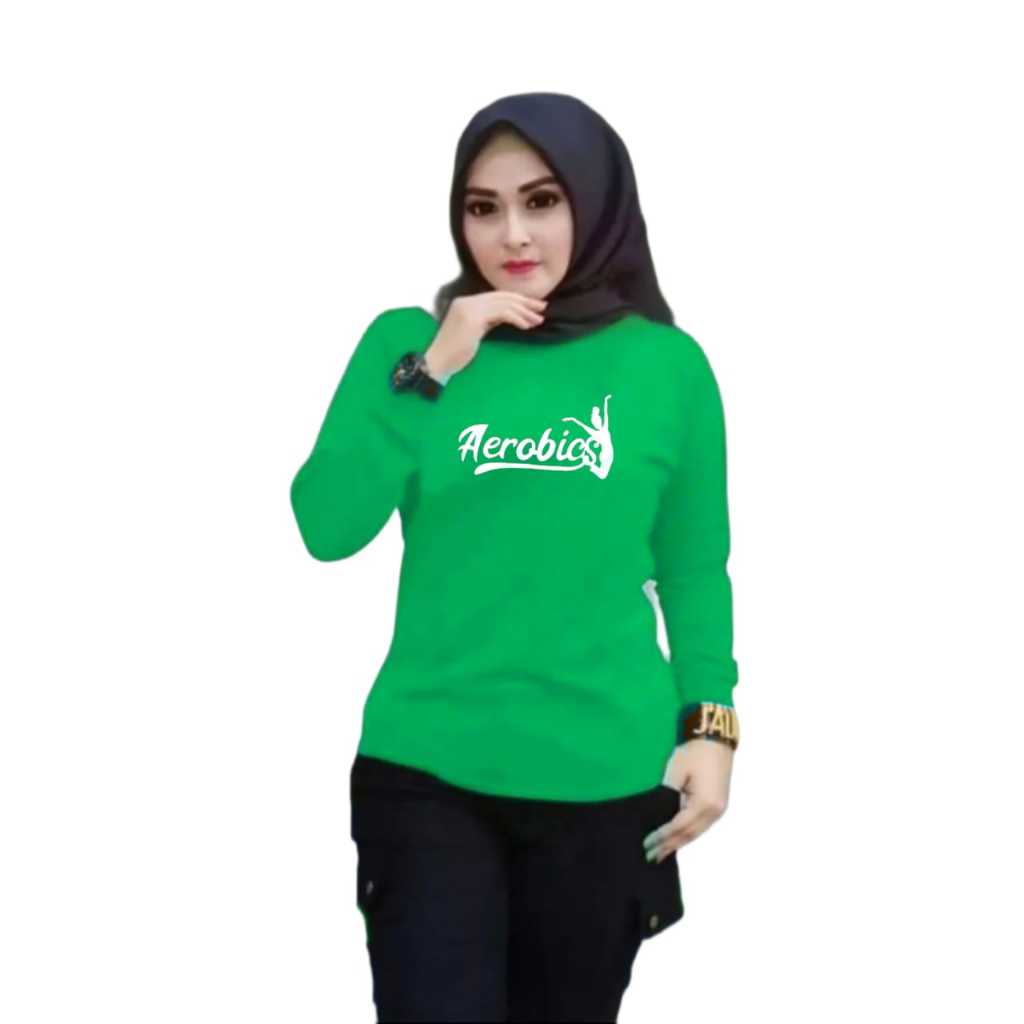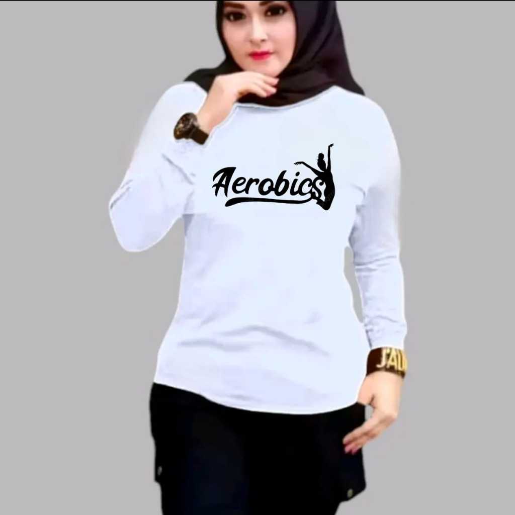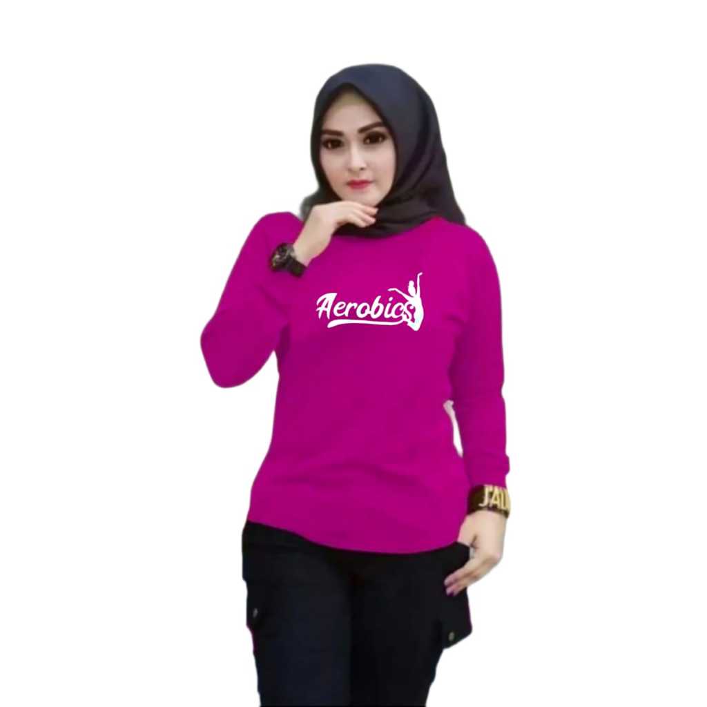 Baju senam wanita lengan panjang kaos atasan olahraga aerobic fittness gym joging lari wanita