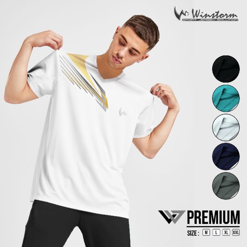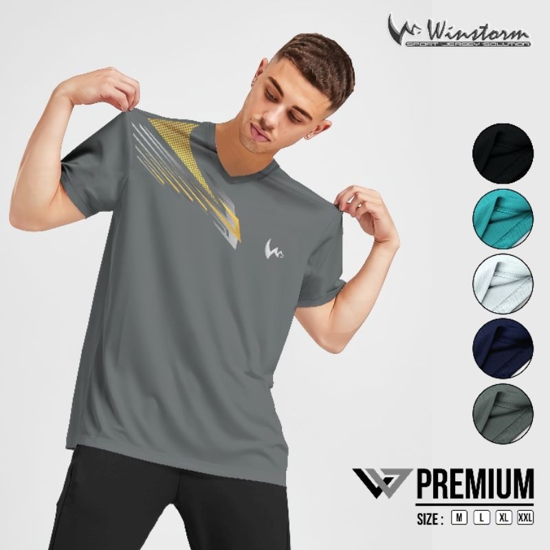 Winstorm SPLIT Kaos Olahraga Polos Dewasa Premium Baju Sport Badminton Lari Gym Fitnes
