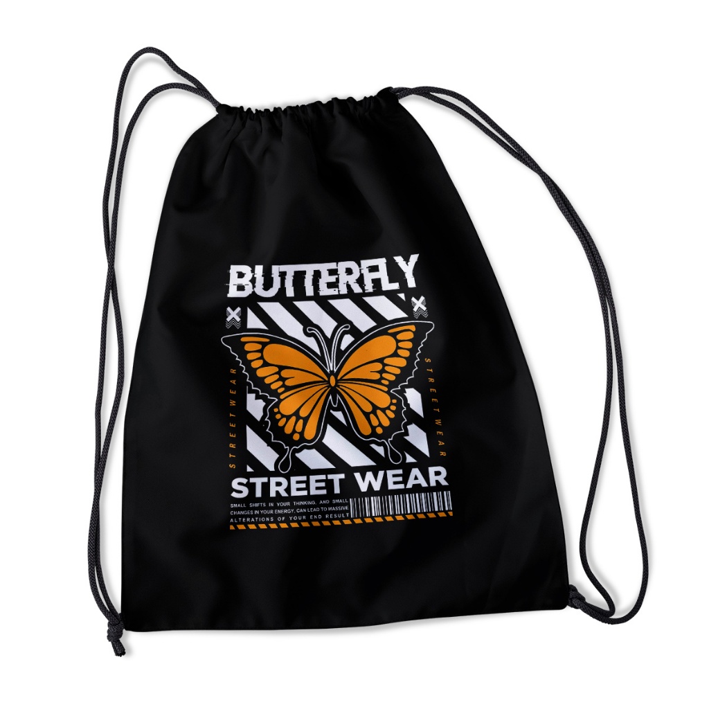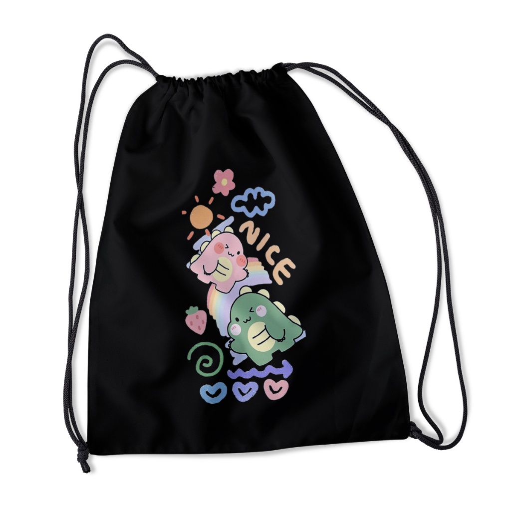 Tas Serut Hitam - Stringbag Pria Wanita Kece Motif DTF Anti Air | Devva.id