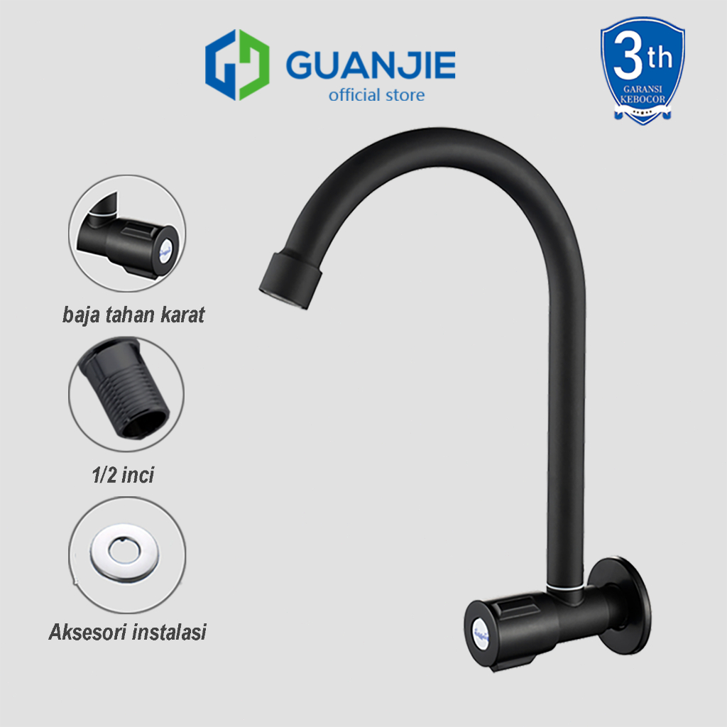 GUANJIE - SUS304 Kran Angsa Fleksibel Kran Cuci Piring Hitam Kran Cuci Piring Dinding Anti Karat Harga Agen/Penyes