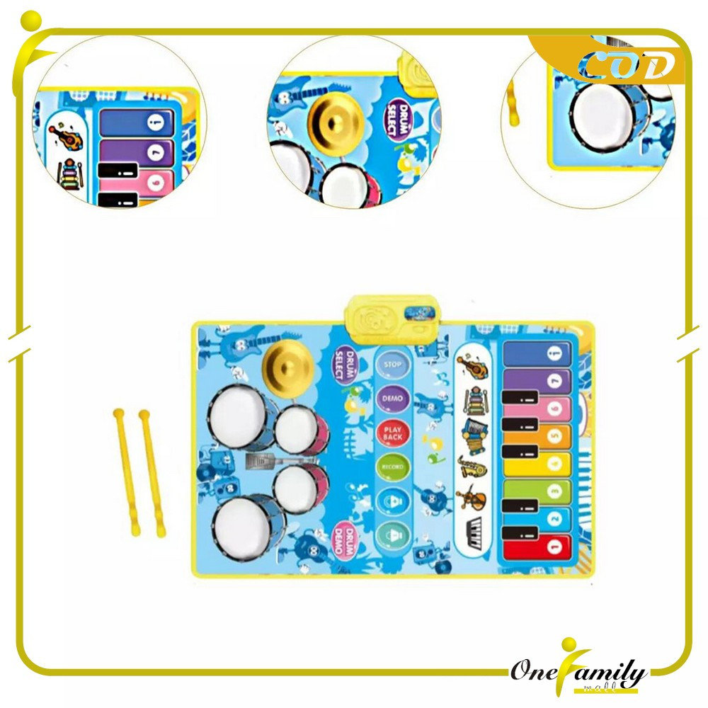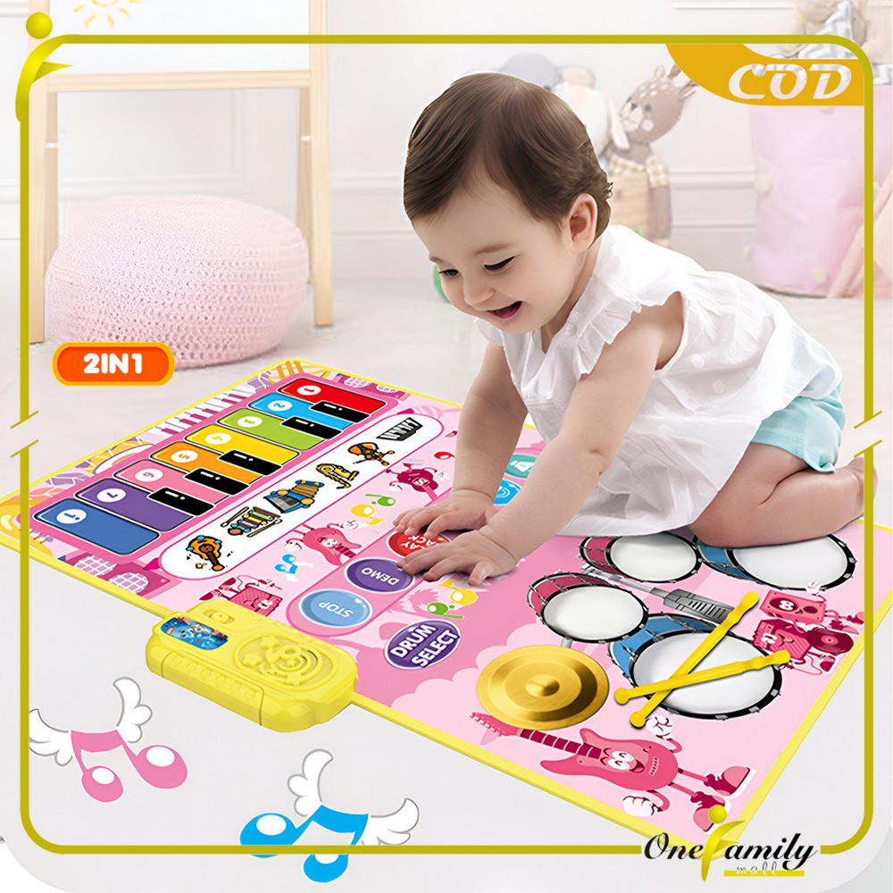 One-M378 Mainan Edukasi Anak Playmat 2In1 Music Mat Piano Drum / Mainan Anak Karpet Alat Musik Bersuara / Alas Set Maina