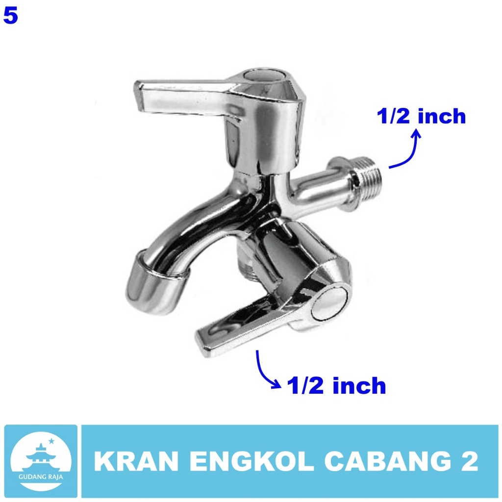 Kran Air Engkol Stainless 1/2 inch Cabang 2 Putar Tembok Keran Kamar Mandi Shower Chrome Mesin Cuci