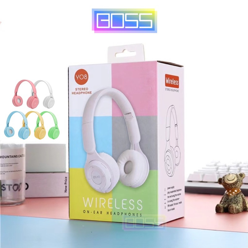 HEADPHONE BLUETOOTH HEADSET WIRELESS MACARON Y08 STEREO HEADPHONE
