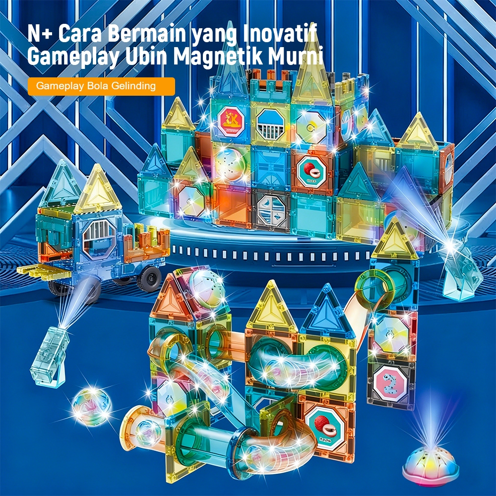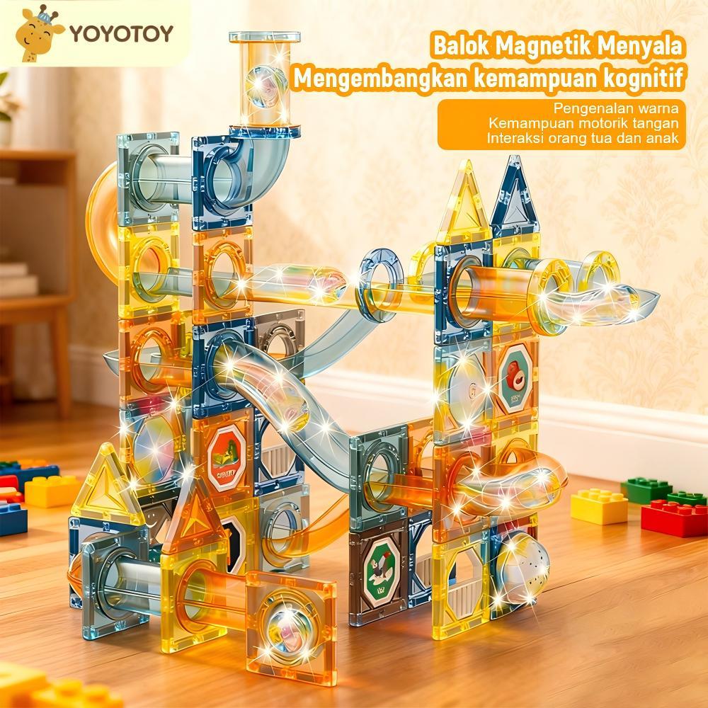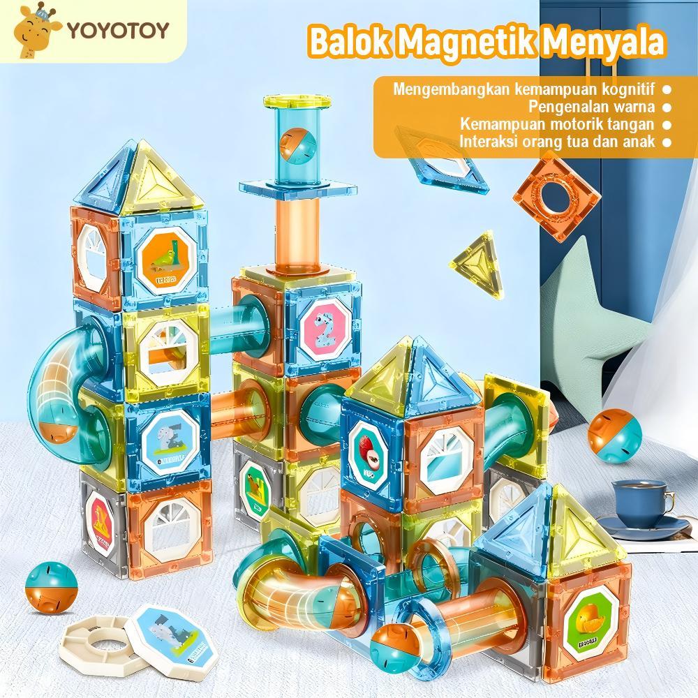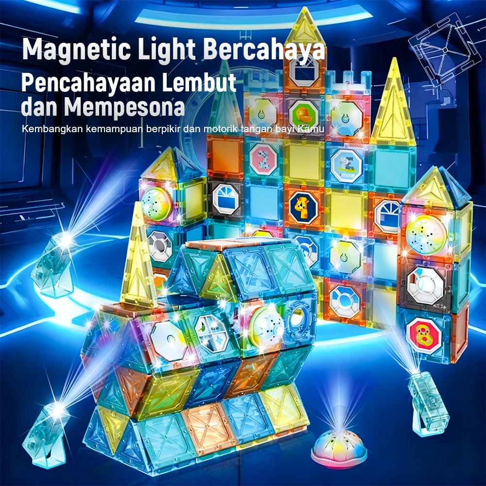 Yoyotoy Magnetic Blocks 136Pcs Edukasi Mainan- Building Brick Anak Edukatif 3D Tiles Dengan Lampu Mainan Anak Viral