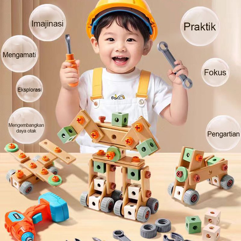 Helik 182Pcs Mainan Set Perbaikan Sekrup Bor Listrik Anak Bor Listrik Tool Set Simulasi Diy Mainan Edukasi