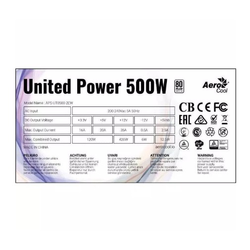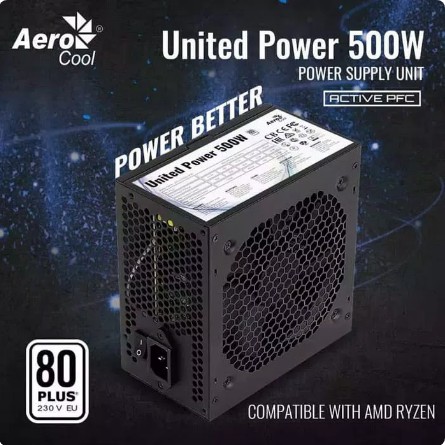 Aerocool United wer 500W - 500 Watt 80 PLUS White Gaming PSU